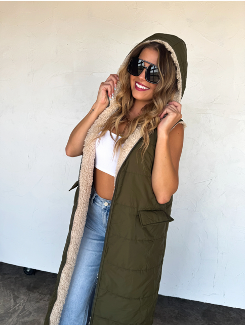 PRE ORDER- Reversible Sherpa Puffer Vest