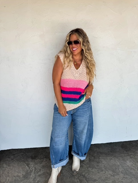These adorable crochet knit sweater vests are the perfect addition to your wardrobe! Can be dressed up or down, or worn with a long sleeve or tank! Comes in beautiful Spring colors.